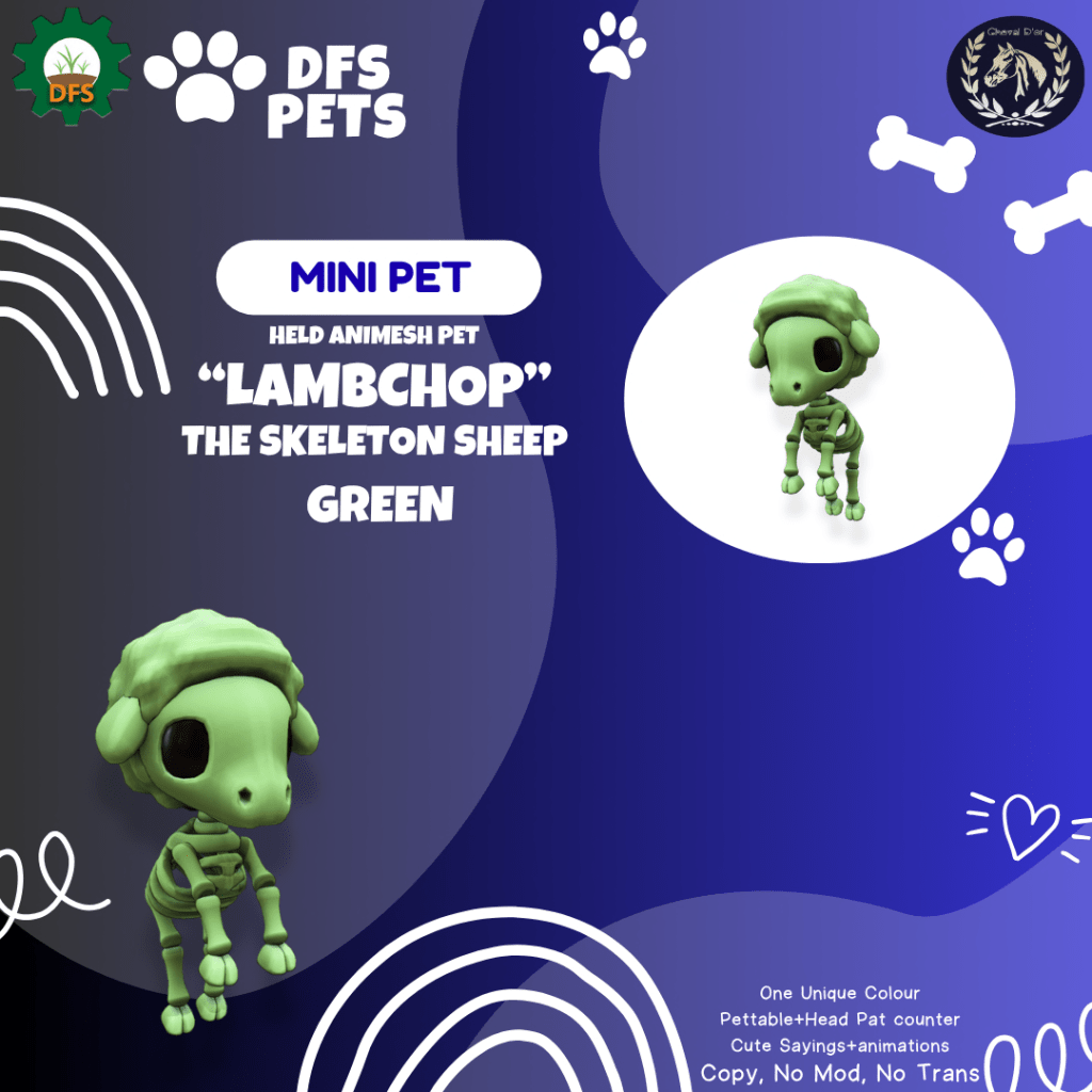 DFS Mini Pets – Lambchop Skeleton Sheep. Green