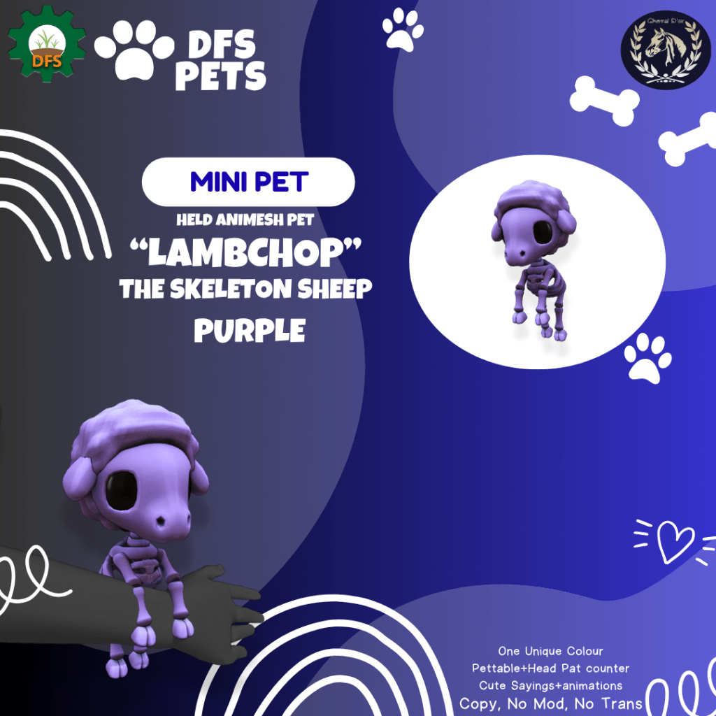 DFS Mini Pets – Lambchop Skeleton Sheep. Purple