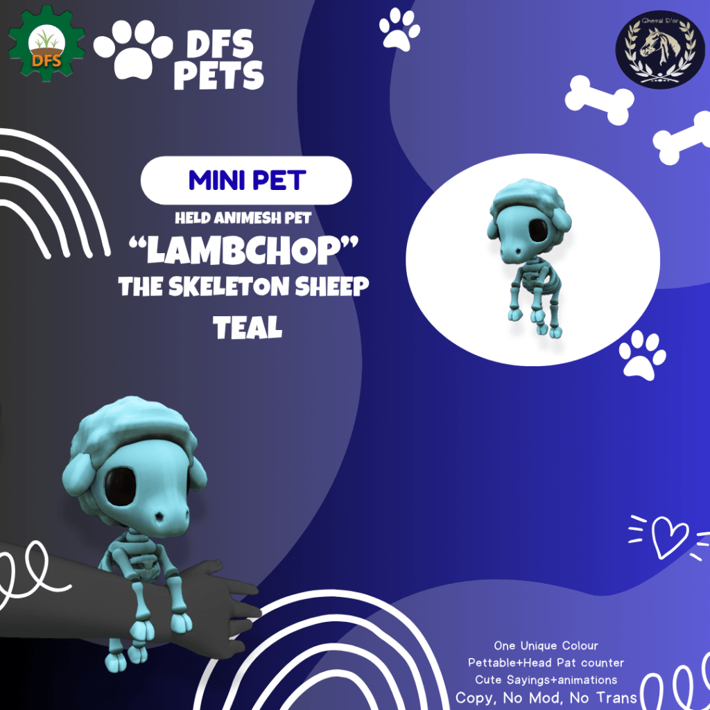 DFS Mini Pets – Lambchop Skeleton Sheep. Teal